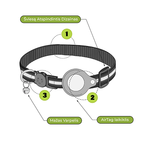 Atraskite pažangiausią augintinių saugumo technologiją: mūsų Šviesą Atspindintį Atsegamą Antkaklį Katėms su "AirTag" Laikikliu. Šis pažangiausias antkaklis sukurtas taip, kad jūsų augintinis išliktų saugus, matomas ir stilingas, nesvarbu, kokie nuotykiai jį lydėtų.