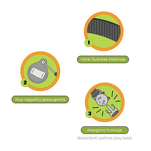 Saugumui teikiamas didžiausias prioritetas, todėl mūsų apykaklėje yra šviesą atspindinti juostelė, kuri ryškiai šviečia esant net ir mažiausiam apšvietimui tam, kad jūsų katė būtų matoma esant prastam apšvietimui arba per jos naktinius nuotykius. Šis šviesą atspindintis elementas užtikrina, kad ją matys praeiviai ir vairuotojai, taip gerokai sumažinant nelaimingų atsitikimų riziką.